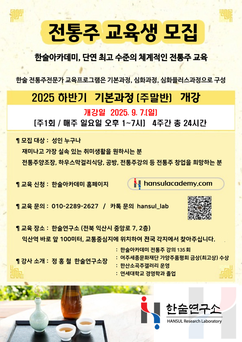 한술연구소 전통주 아카데미 입니다.